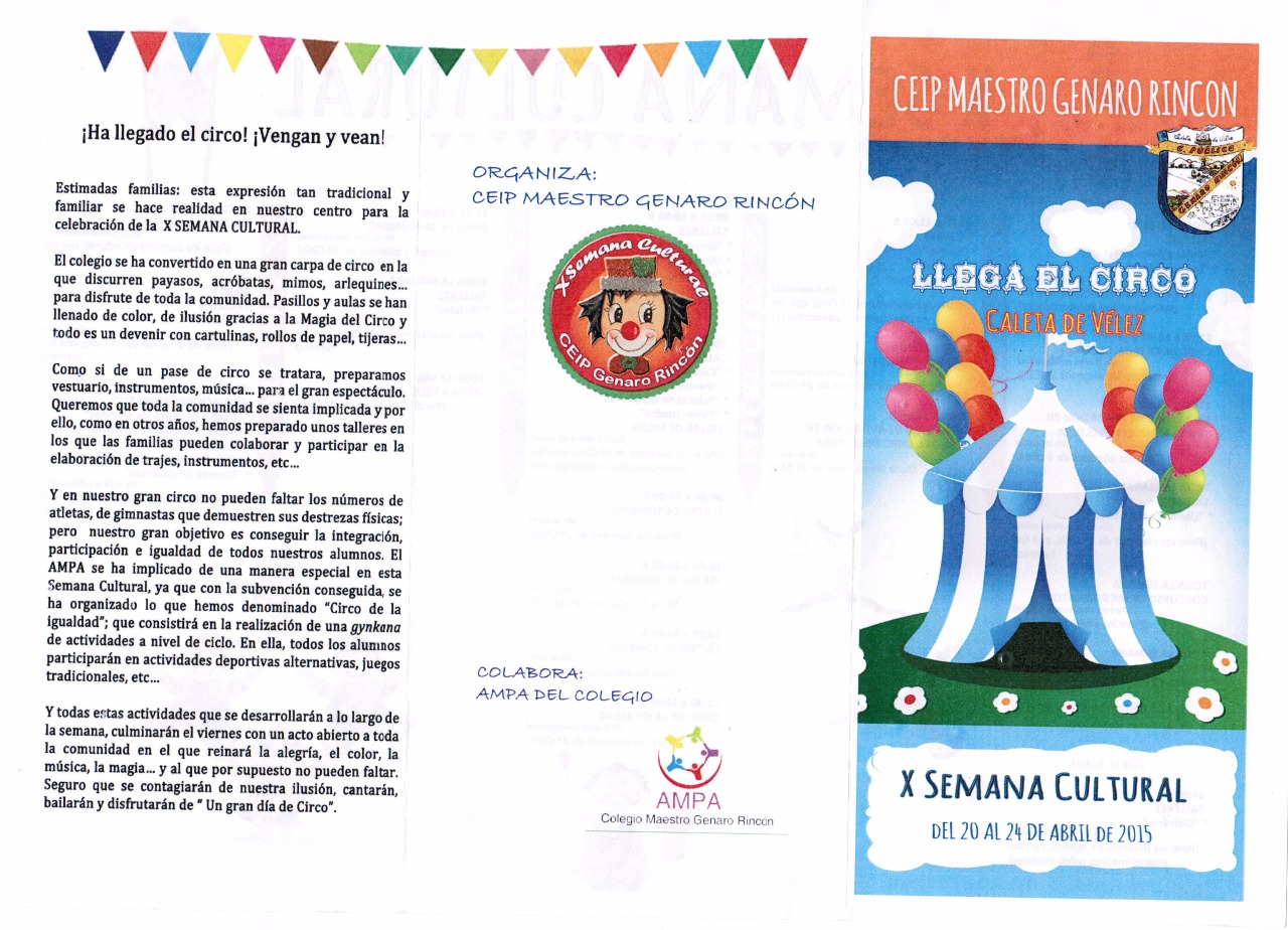 Podéis descargar el cartel anunciador (elaborado por la AMPA) y el díptico de esta semana (elaborado por el colegio).